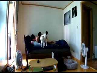 家庭网络摄像头被黑TP大白天新婚不久的年轻夫妻激情啪啪娇妻身材太性感了被搞的销魂淫叫一对狗狗观战